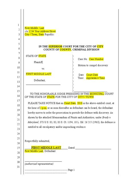 Motion For Discovery Template