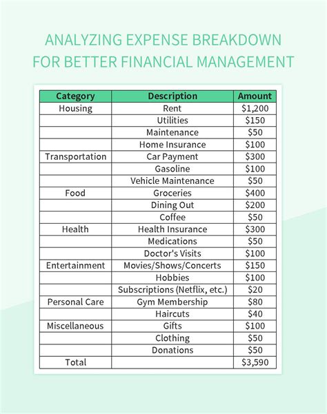 Expenses Breakdown Template Database