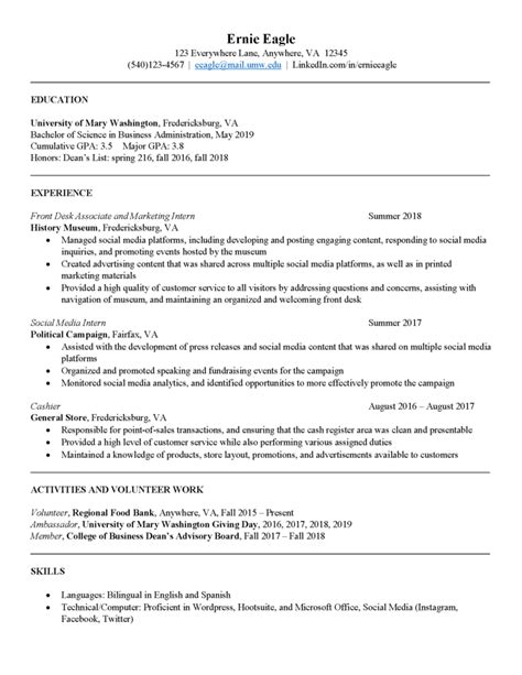 Resume Samples Division of Student Affairs